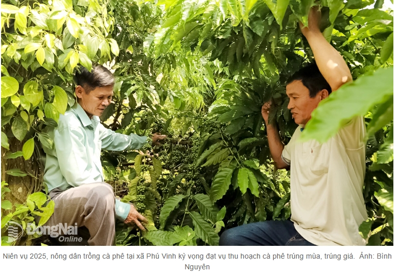 Nhờ giá cao, cây cà phê đang cho lợi nhuận tốt. Theo đó, nhiều nông dân trên địa bàn tỉnh quan tâm trồng mới hoặc tái canh cây cà phê khiến diện tích cây trồng này đang tăng nhanh trở lại. Cây cà phê vẫn là cây trồng chủ lực trên địa bàn tỉnh với định hướng chú trọng đầu tư cho chất lượng, xây dựng thương hiệu cà phê của Đồng Nai.