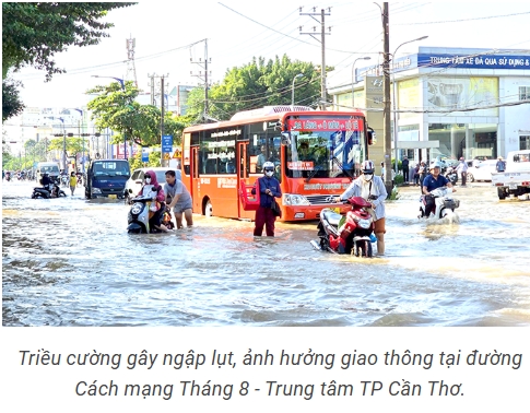 Cuối tháng 8-2025, nước từ thượng nguồn sông Mekong đổ về kết hợp với triều cường dâng cao làm ngập lụt khu vực trũng thấp, đường giao thông ven sông rạch trên địa bàn TP Cần Thơ. Ngành chức năng thành phố và các xã, phường đã và đang chủ động ứng phó ngập lụt.