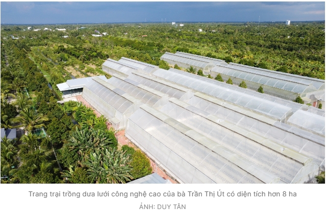 Nhờ ứng dụng khoa học - công nghệ, sản xuất theo chuẩn VietGAP và đa dạng hóa sản phẩm, bà Trần Thị Út (52 tuổi) từng bước khẳng định hướng đi bền vững cho dưa lưới.