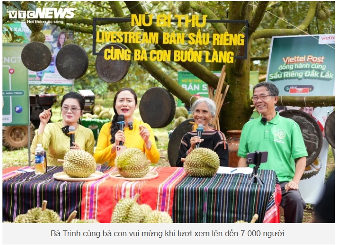 Trong chiếc áo bà ba giản dị, bà Trinh cùng bà con buôn làng giới thiệu thương hiệu sầu riêng Ami Kâo – “Sầu riêng của mẹ”, nông sản tiêu biểu của địa phương. Phiên phát sóng nhanh chóng thu hút hàng nghìn lượt theo dõi, hàng chục tấn sầu riêng được đặt mua ngay tại chỗ, tạo nên không khí rộn ràng chưa từng có nơi vùng đất vốn yên ả.