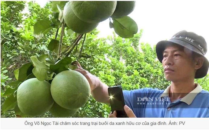 Ông Võ Ngọc Tài cho biết, canh tác hữu cơ là trụ cột của mô hình kinh tế trang trại. Toàn bộ vườn bưởi không sử dụng phân hóa học, mà thay thế bằng phân hữu cơ và chế phẩm sinh học.