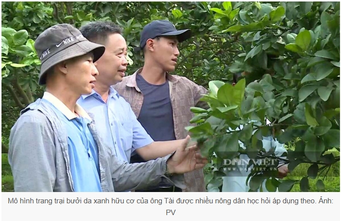 Bà Lại Thị Thu Huyền - Phó Chủ tịch Hội Nông dân phường Tân Uyên cho biết, hộ ông Võ Ngọc Tài là điển hình trong phát triển kinh tế trang trại. Thứ 1 là tiết kiệm chi phí sản xuất nhờ canh tác hữu cơ, thứ 2 là bảo đảm an toàn cho người tiêu dùng và sức khỏe người sản xuất, đồng thời đáp ứng yêu cầu an toàn thực phẩm. Trong các buổi tập huấn, ông Tài trực tiếp chuyển giao quy trình canh tác hữu cơ để nhân rộng mô hình kinh tế trang trại bưởi da xanh hữu cơ Tân Uyên cho nhiều hộ khác.