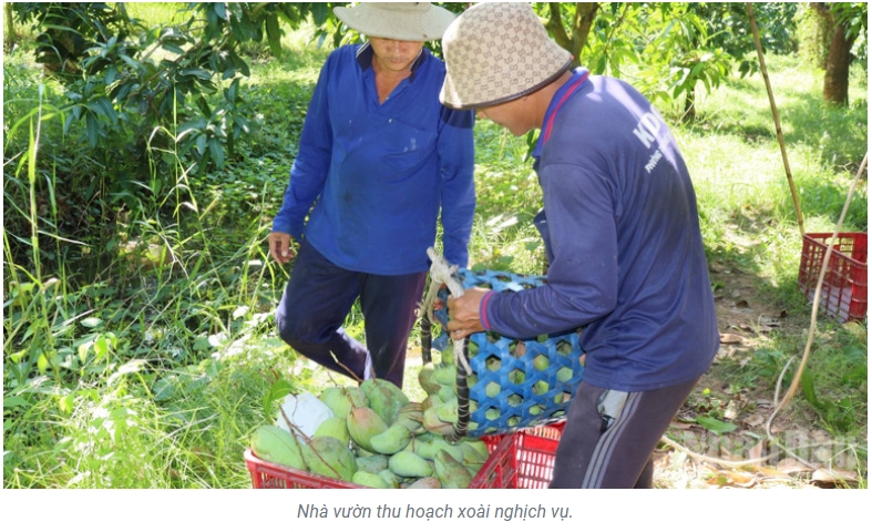 Bà Nguyễn Thị Ngọc Thắm trồng xoài theo tiêu chuẩn VietGAP với diện tích 1 héc-ta chia sẻ, nhiều nhà vườn dùng kỹ thuật bao trái để xoài cho sản lượng xoài tượng da xanh hay xoài hạt lép theo ý muốn. Nhưng để có được trái xoài chất lượng xuất khẩu, nhà vườn phải trồng đúng quy trình, rất cực hơn so với trồng thông thường nhưng bù lại xoài sạch nên đầu ra được bao tiêu, ổn định giá.