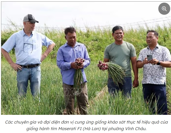 Một “điểm sáng” trong niên vụ năm nay là việc mở rộng diện tích trồng thử nghiệm giống hành tím mới Maserati F1 (Hà Lan). Hiện tại, Hợp tác xã Hành tím Vĩnh Châu liên kết sản xuất và tiêu thụ giống hành này trên diện tích khoảng 20 ha.