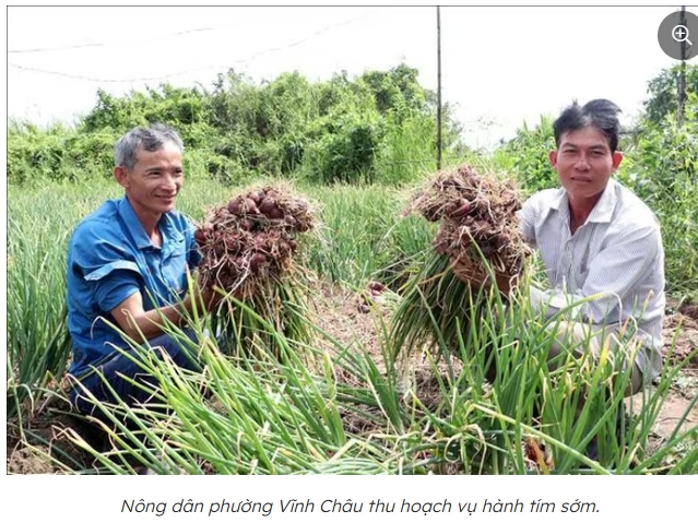 Vụ hành tím Tết năm nay, nông dân trồng giống hành truyền thống tại Vĩnh Châu phải đối mặt với nhiều áp lực. Theo ông Thái Văn Tùng, Giám đốc Hợp tác xã Nông nghiệp Samaki (xã Vĩnh Hải), mưa lớn kéo dài đã làm chậm lịch xuống giống của bà con. Hiện nay, nhiều diện tích hành chính vụ mới xuống giống được khoảng 10 - 15 ngày nên gần như không có hành bán Tết, phải đợi sau Tết mới bước vào cao điểm thu hoạch.