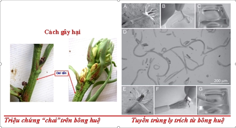 +Tuyến trùng có thể sống tiềm sinh trên vỏ trấu, rơm rạ hoặc thân, cành,hoa và củ giống cây huệ vụ trước. Nên nhổ bỏ cây bị bệnh và tàn dư ra khỏi ruộng hoặc đốt đồng để diệt mầm bệnh và tuyến trùng trong tàn dư cây trồng