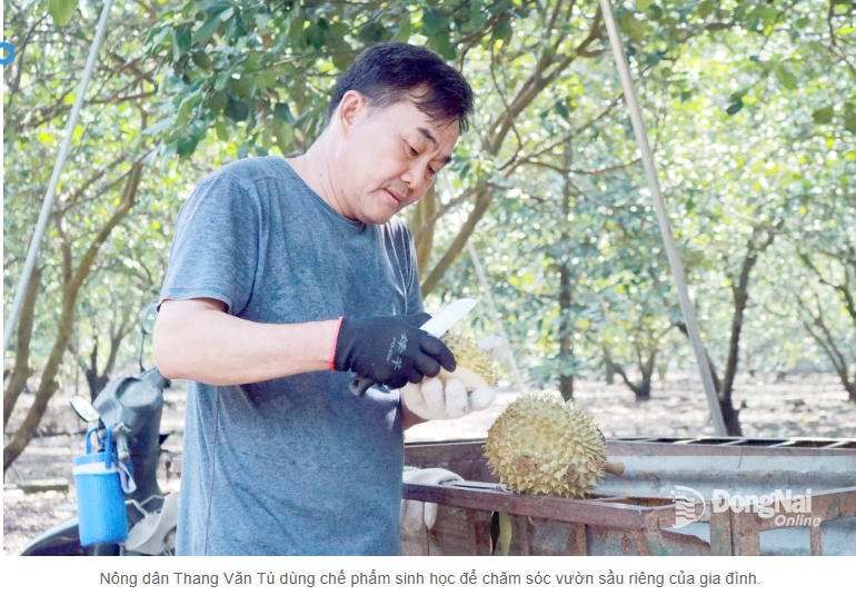 Đơn cử như với 2ha trồng sầu riêng, năm nay, ông Thang Văn Tú dự kiến thu về 1 tỷ đồng. Để phát triển vườn sầu riêng bền vững và trái đạt năng suất cao, ông sử dụng các biện pháp sinh học trong chăm sóc. Theo đó, ông sử dụng biện pháp IMO sinh học với nguyên liệu từ phế phụ phẩm nông nghiệp như: sầu riêng hỏng, vỏ bưởi, cá thải, phân chim cút… để làm phân bón cho cây sầu riêng và các loại cây trồng khác. Việc làm này vừa giúp cây tăng năng suất, hạn chế sâu bệnh, đồng thời là giải pháp để cây phát triển ổn định, tránh phụ thuộc phân bón hóa học, từ đó giảm thiểu chi phí của người nông dân.