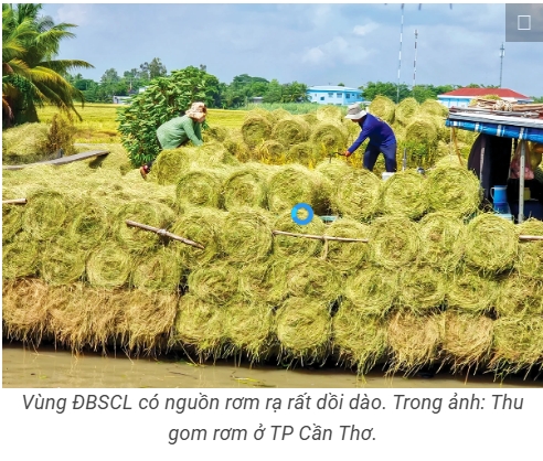Việt Nam có nguồn rơm rạ dồi dào từ quá trình sản xuất lúa, nhất là tại vùng ĐBSCL. Với sự hỗ trợ, hướng dẫn của ngành chức năng, nông dân tại các địa phương có trồng lúa đã quan tâm thu gom rơm để khai thác, sử dụng cho nhiều mục đích khác nhau nhằm gia tăng thu nhập và giảm phát thải khí nhà kính. Tuy nhiên, hiện vẫn còn một lượng lớn rơm rạ bị đốt bỏ lãng phí trên đồng sau các mùa thu hoạch lúa, điều này đòi hỏi cần có giải pháp khắc phục kịp thời.