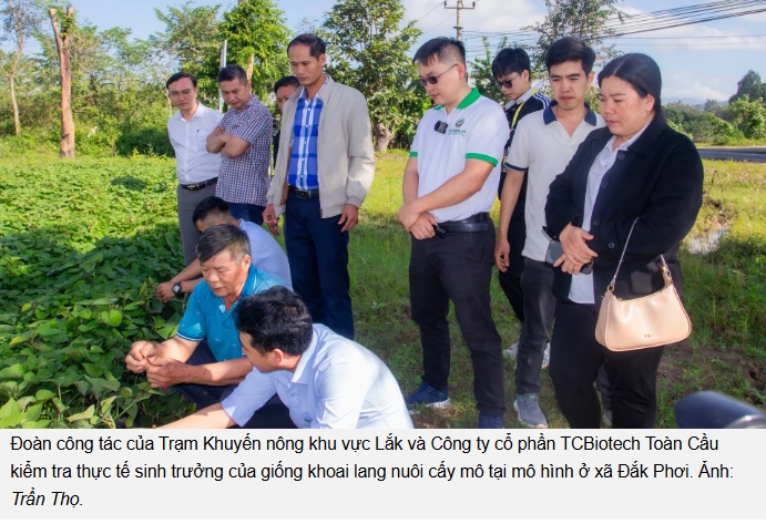 Trạm Khuyến nông Lắk phối hợp với Công ty cổ phần TCBiotech Toàn Cầu vừa tổ chức hội thảo đầu bờ đánh giá mô hình sản xuất giống khoai lang cấy mô.