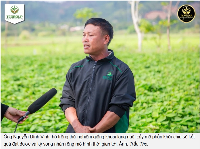 Ông Lê Bảo Trung, Trưởng phòng Kinh doanh - Công ty cổ phần Tcbiotech Toàn Cầu chia sẻ: “Phương pháp nuôi cấy mô mang lại rất nhiều lợi thế. Giống khoai lang cấy mô có độ đồng đều cao, khả năng kháng bệnh tốt, đặc biệt là duy trì được trọn vẹn đặc điểm của giống gốc. Điều này giúp nông dân yên tâm mở rộng diện tích mà vẫn giữ được chất lượng sản phẩm”.
