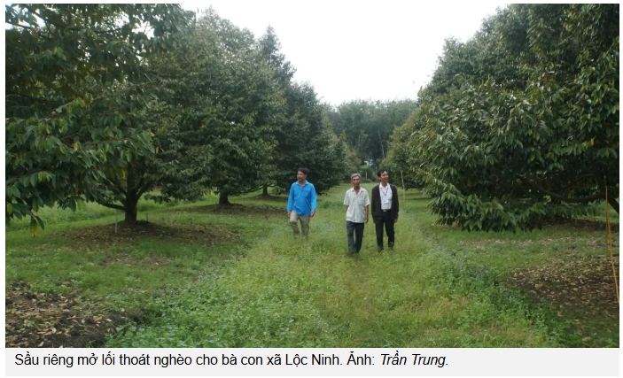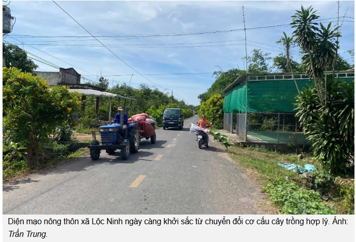 Ông Võ Văn Mỹ, một hộ dân tiêu biểu tại xã Lộc Ninh, chia sẻ: "Hồi đầu cũng lo lắm, bỏ lúa đi trồng sầu riêng là cả một gia tài. Nhưng nghe cán bộ xã phân tích, thấy đất mình tốt quá, lại có nước tưới đầy đủ, tui liều làm theo. Giờ thì mừng rồi, một sào sầu riêng lời gấp mấy chục lần so với trồng lúa".