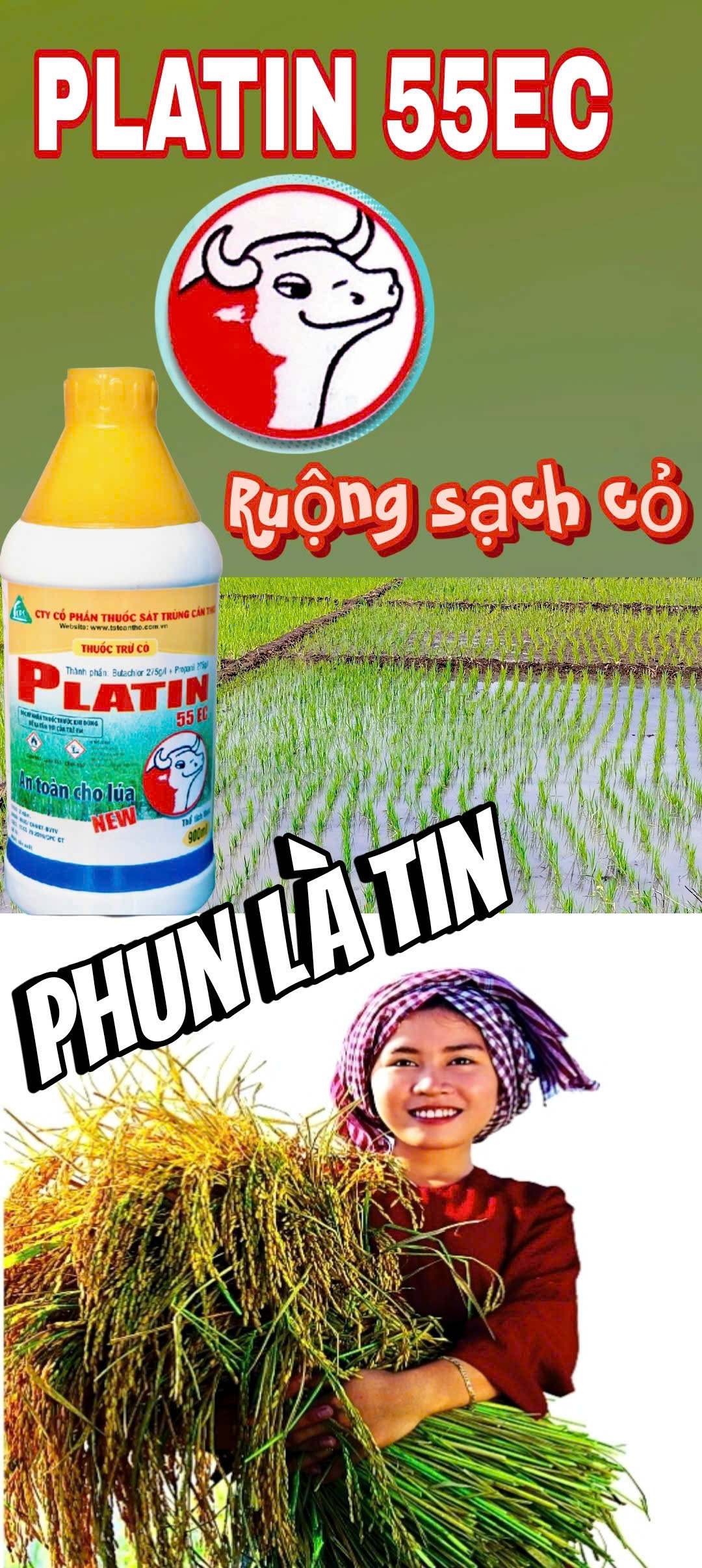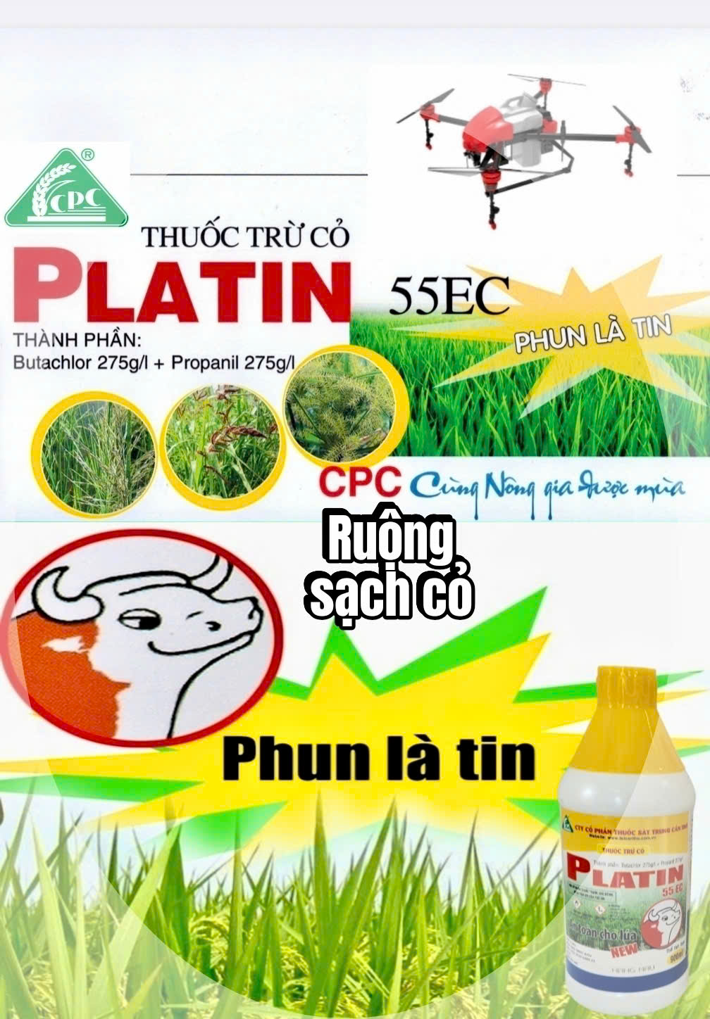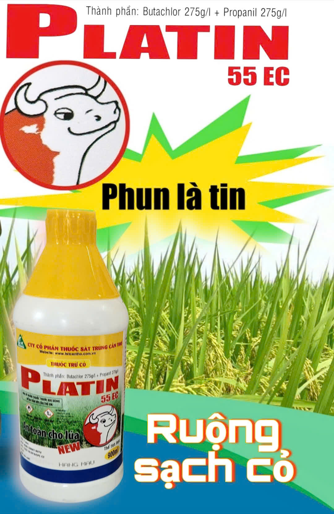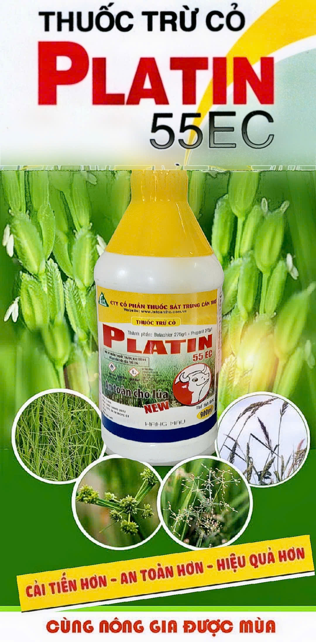 🐃PLATIN diệt hầu hết các loại cỏ như: cỏ lồng vực, cỏ đuôi phụng, cỏ cháo, cỏ chác, lát, năn…. trên ruộng.🐂