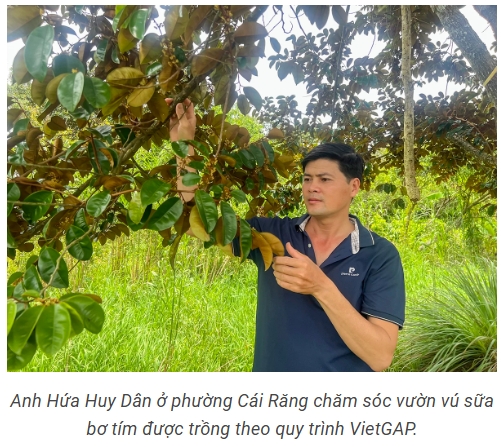 Nhờ thực hiện theo quy trình VietGAP, vú sữa bơ tím của vườn anh Dân khi thu hoạch đạt trọng lượng trên 500 gram/trái, màu tím đậm, vỏ mỏng, thịt ráo nước, vị ngọt thanh, thơm mùi bơ sữa và không dính mủ như nhiều loại vú sữa khác. Với những ưu điểm nổi trội, vú sữa của gia đình anh Dân luôn được thương lái và doanh nghiệp xuất khẩu đặt hàng thu mua với giá cao hơn thị trường.