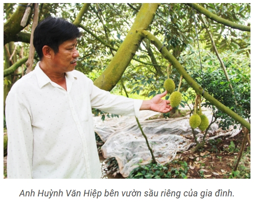 Theo lời kể của anh Huỳnh Văn Hiệp, những năm 1994-1995, khi nghe báo đài nói về các mô hình trồng sầu riêng, anh bắt đầu tìm hiểu qua và đi đến tỉnh Tiền Giang (cũ) nơi trồng nhiều sầu riêng lúc bấy giờ để học cách trồng và chăm sóc loại cây này.