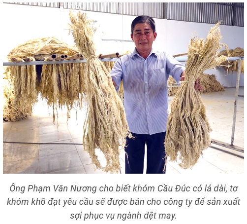 Trăn trở trước cảnh lá khóm bị đốt bỏ dễ gây ô nhiễm môi trường sau mỗi vụ thu hoạch, ông Phạm Văn Nương ở xã Hỏa Lựu, TP Cần Thơ đã tìm cách thu gom, xử lý để tạo sợi tơ khóm phục vụ cho ngành dệt may. Sáng kiến này vừa giúp nhiều nông dân có thêm việc làm, thu nhập ổn định vừa mở ra hướng phát triển bền vững cho vùng khóm Cầu Đúc.