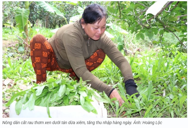 Bà Nguyễn Thị Lan – một hộ tham gia – cho biết: “Vườn dừa trước đây chỉ thu được trái, giờ rau thơm xen vào giúp tôi tăng thu nhập đáng kể, ổn định cả năm. Rau được bao tiêu đầu ra, nông dân chỉ việc chăm sóc, áp dụng kỹ thuật đúng cách, đảm bảo năng suất cao và thu nhập ổn định.