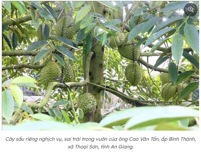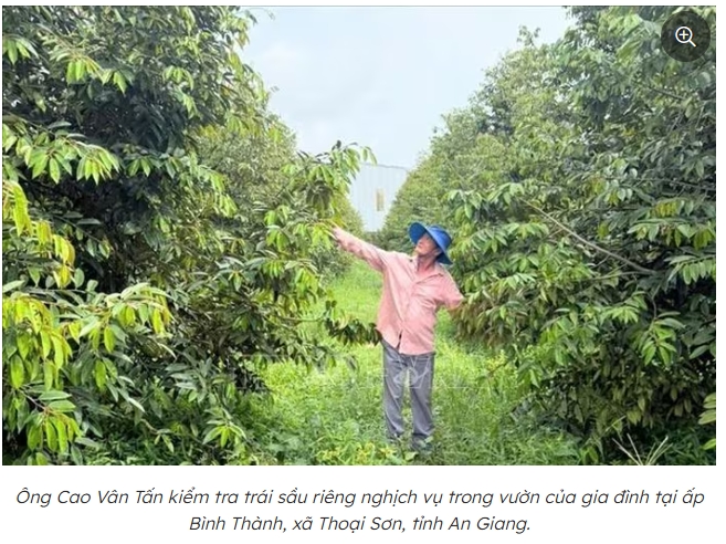 Ông Nguyễn Ngọc Điệp, Chủ tịch UBND xã Thoại Sơn (tỉnh An Giang) cho biết, mô hình trồng sầu riêng cho trái nghịch vụ trên đất lúa kém hiệu quả của ông Tấn đã mở ra hướng đi mới cho địa phương trong chuyển đổi cơ cấu cây trồng vật nuôi, nhất là những hộ có ít đất canh tác, đất vườn tạp.