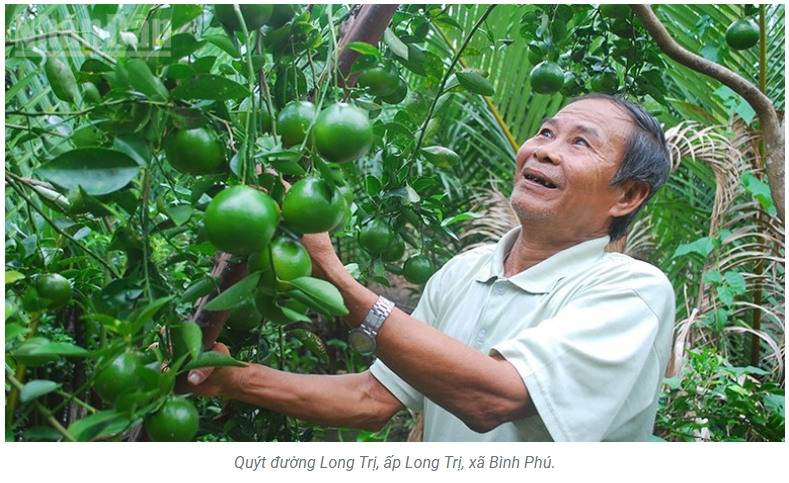Nhờ lợi thế về đất đai, khí hậu, cây quýt đường được trồng tại ấp Long Trị, xã Bình Phú, nổi tiếng năng suất cao, quả to, vỏ mỏng, vị ngọt thanh, bóng sáng và bảo quản lâu. Trước đây, giống quýt này chủ yếu trồng từ hạt, nhưng diện tích đang giảm do cây già cỗi, sâu bệnh và nguồn giống trôi nổi.