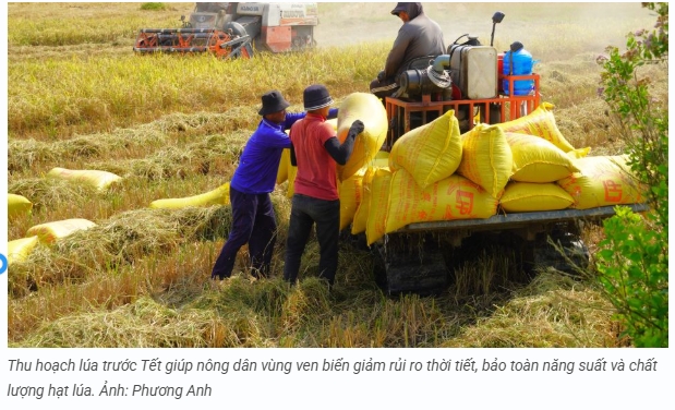 Cần Thơ - Nông dân đang tất bật thu hoạch lúa Đông Xuân, có nguồn thu kịp thời để trang trải chi phí khi Tết đến Xuân về.